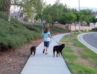 I'm reading Cesar Millan's book A Member of the Family and he says to take the dogs on a walk before letting them in the house together. So off my daughter and I went to the park. As soon as we got there, I thought I would let them off leash for a few minutes to let them run.